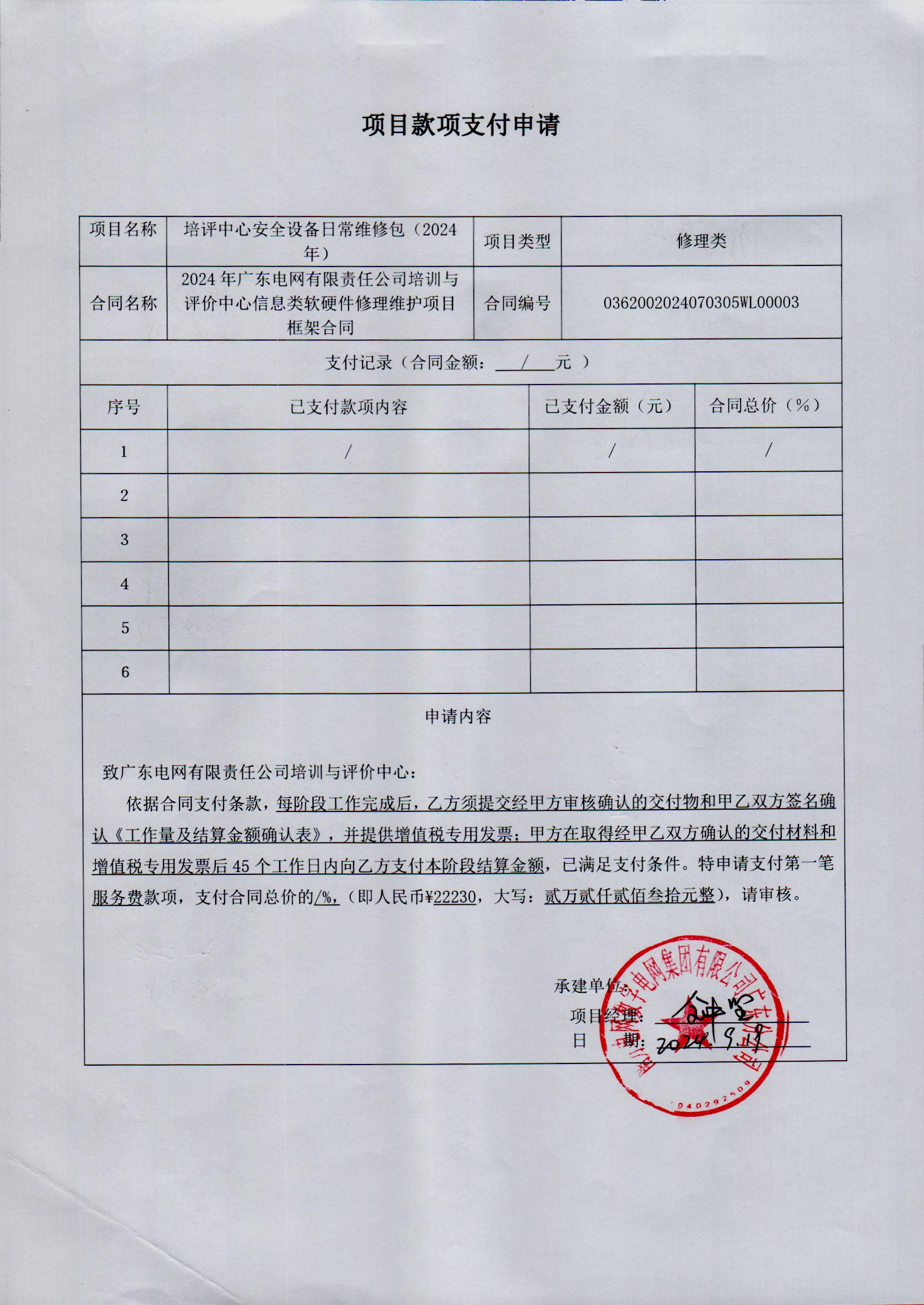 申请表