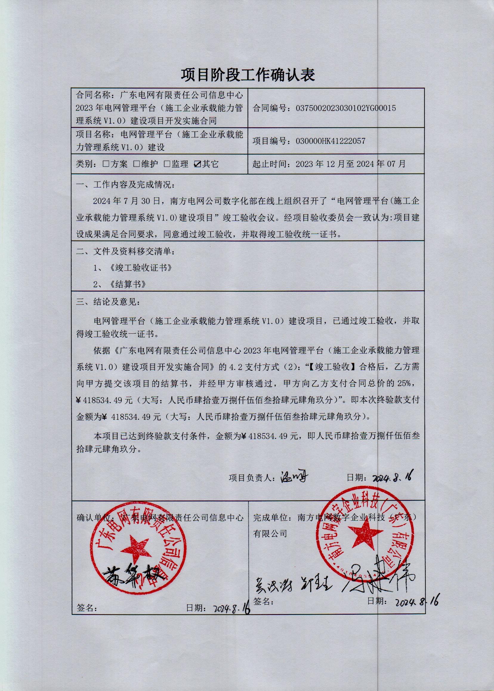 确认表