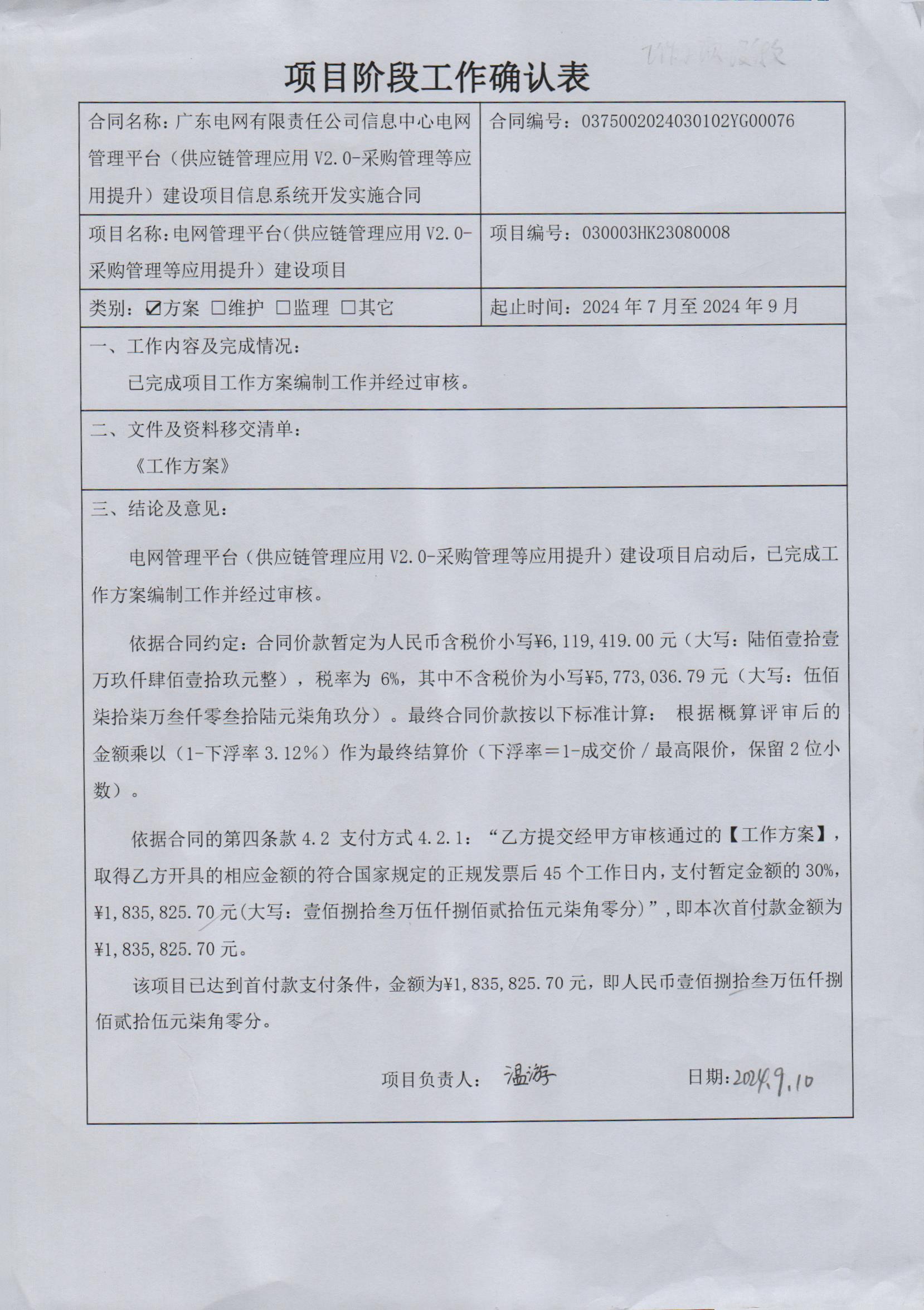 确认表