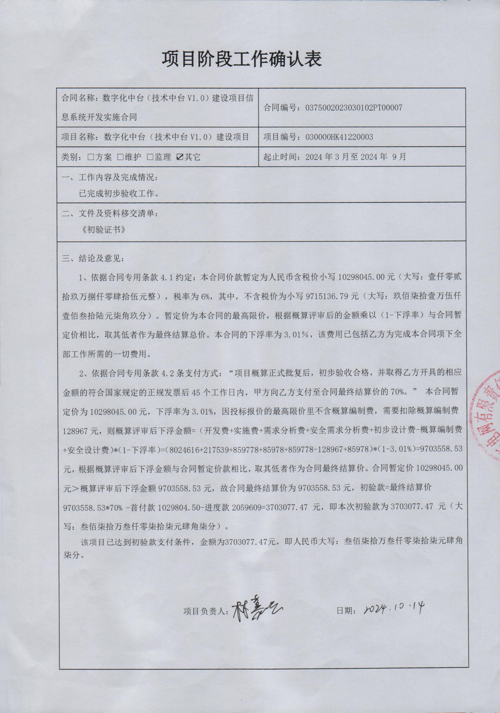 确认表