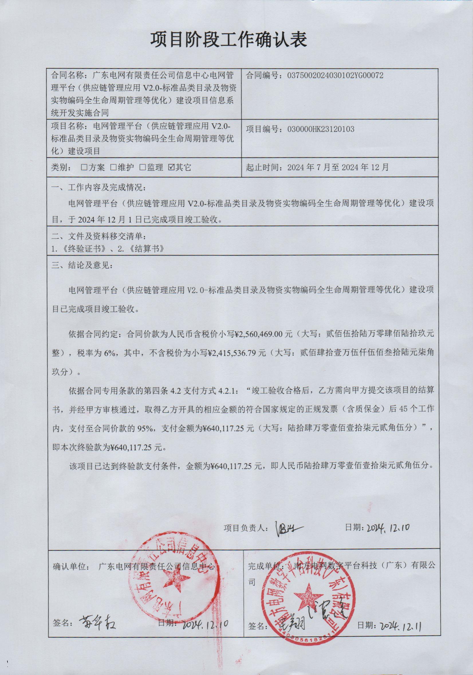 确认表