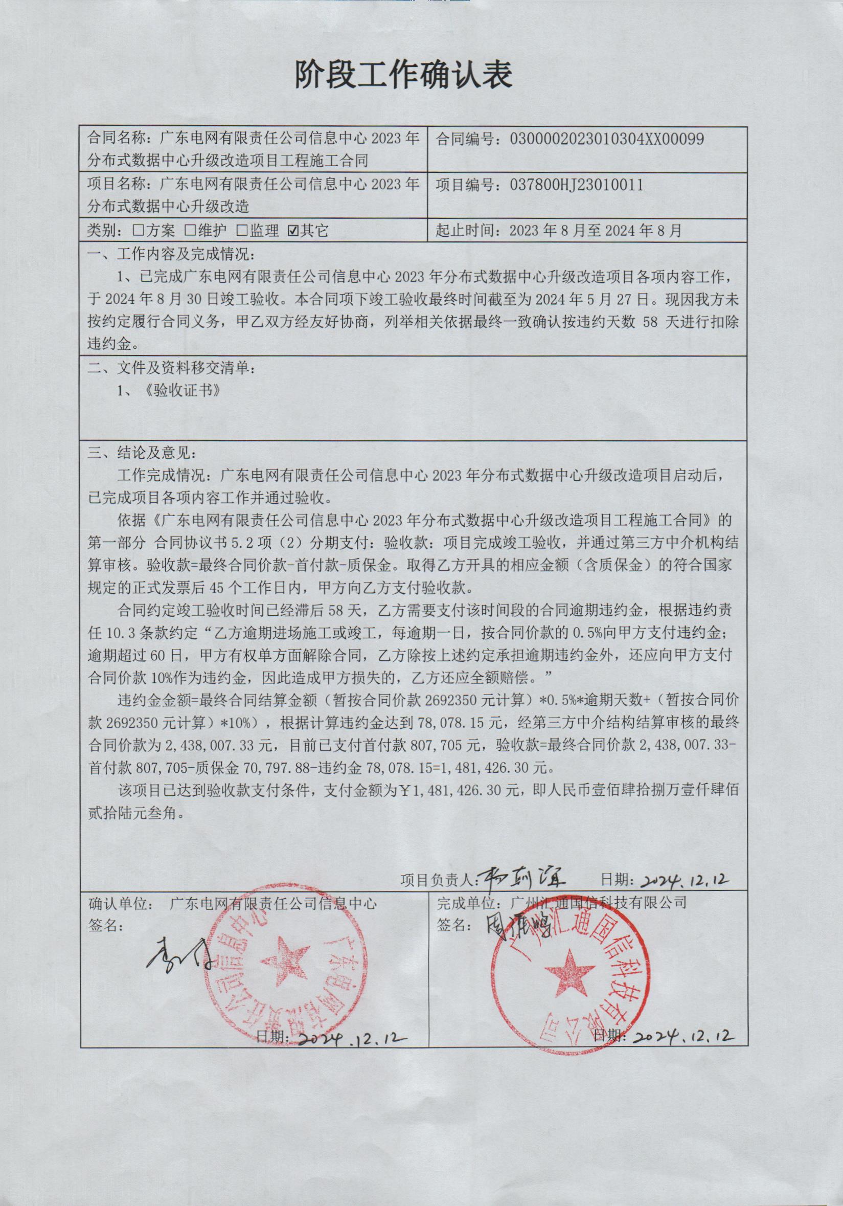 确认表