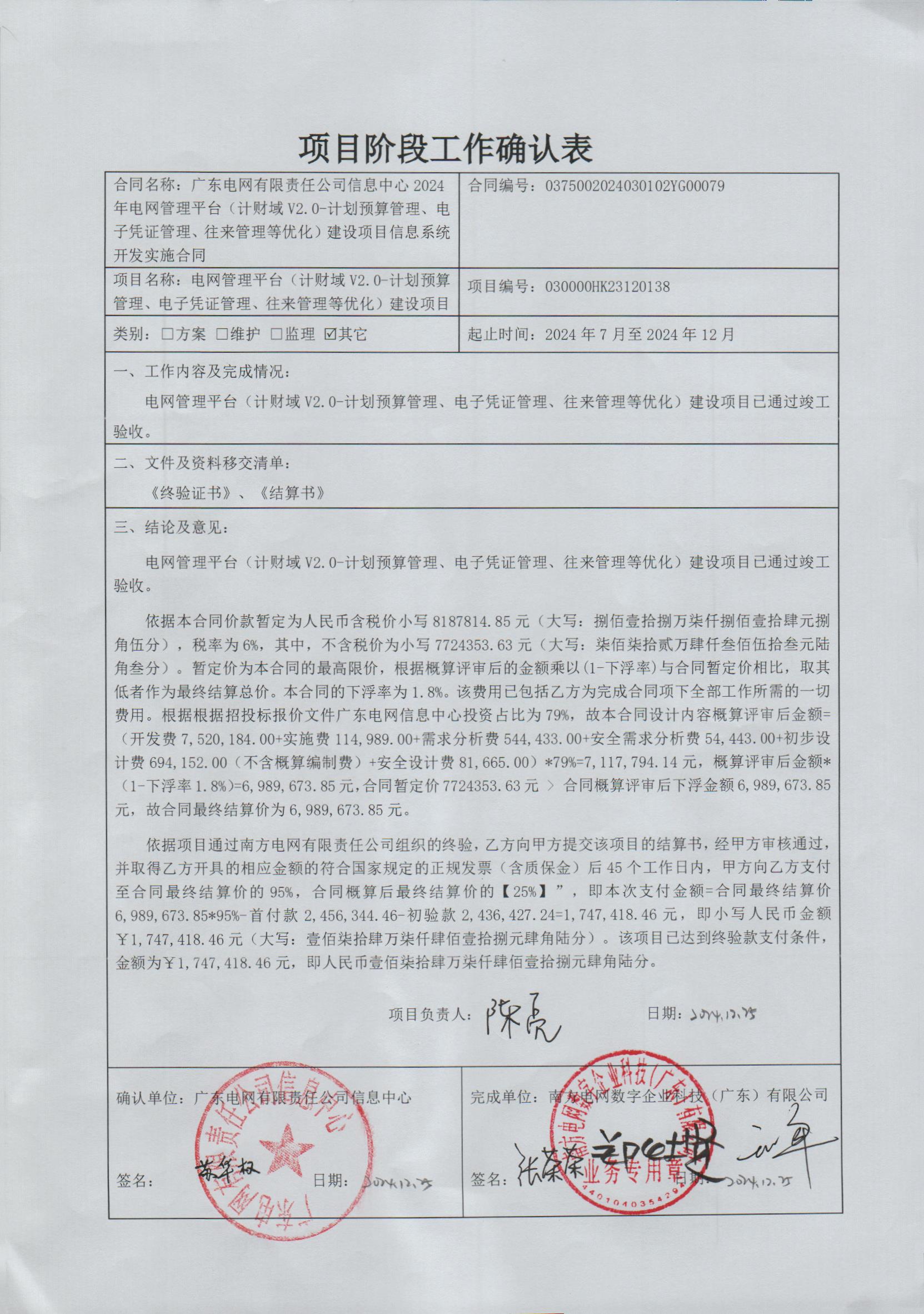 确认表