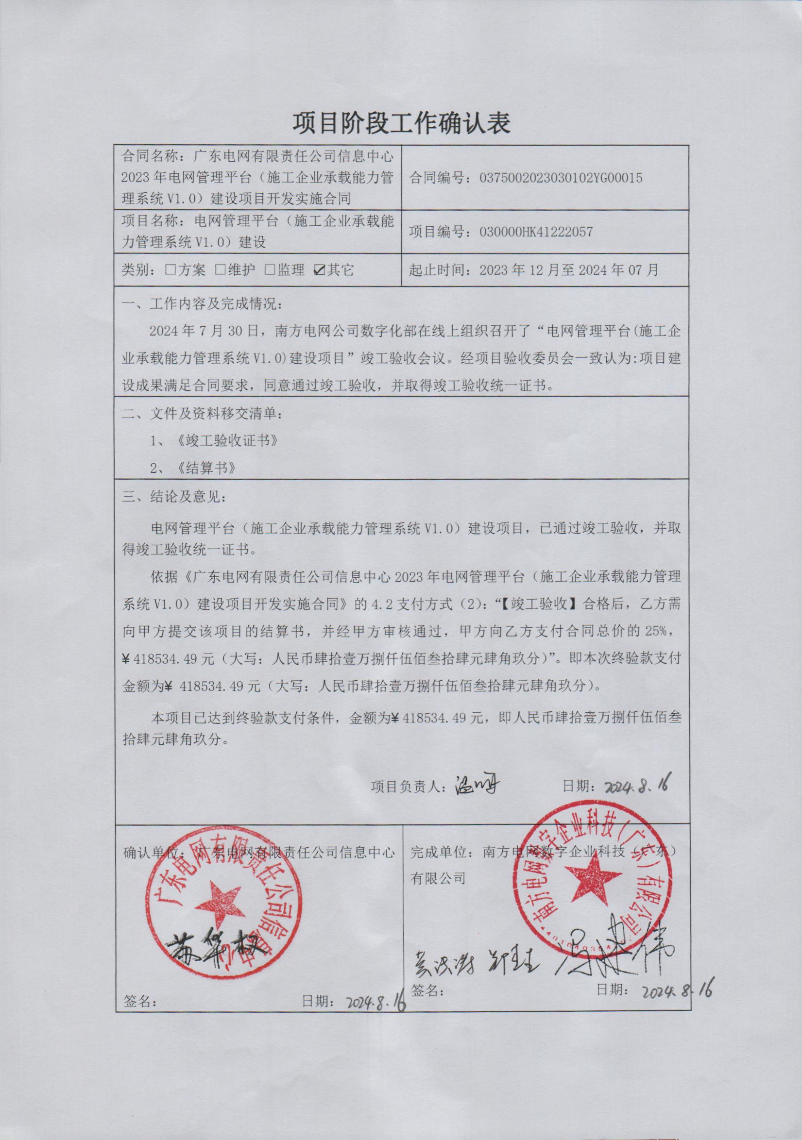 确认表