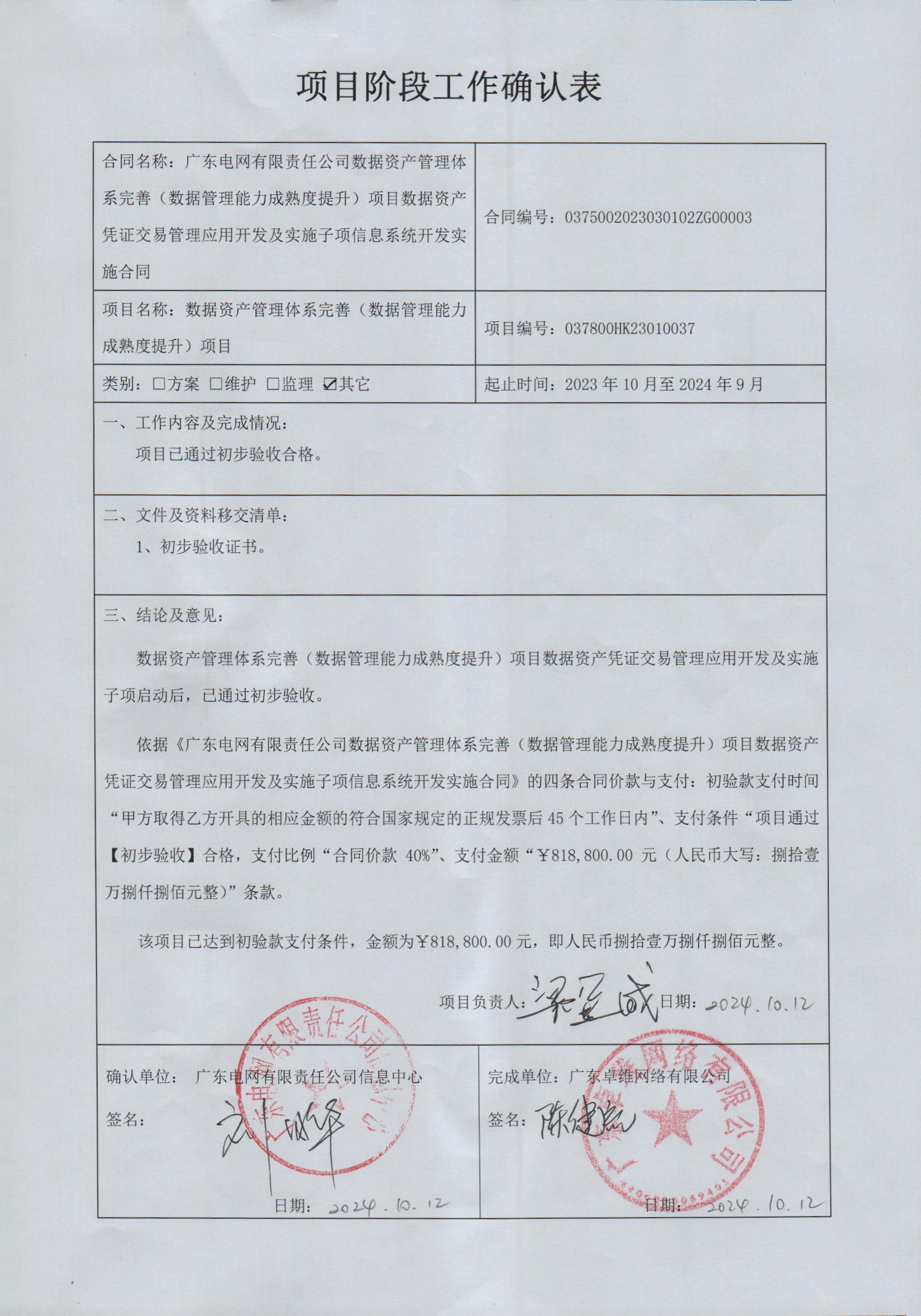 确认表