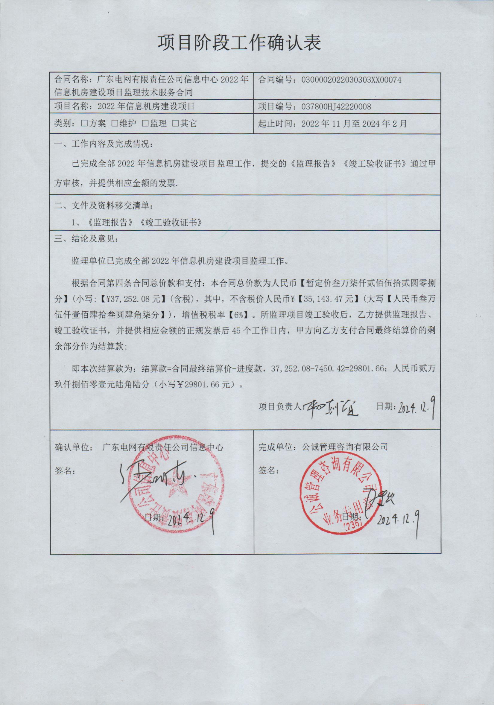 确认表