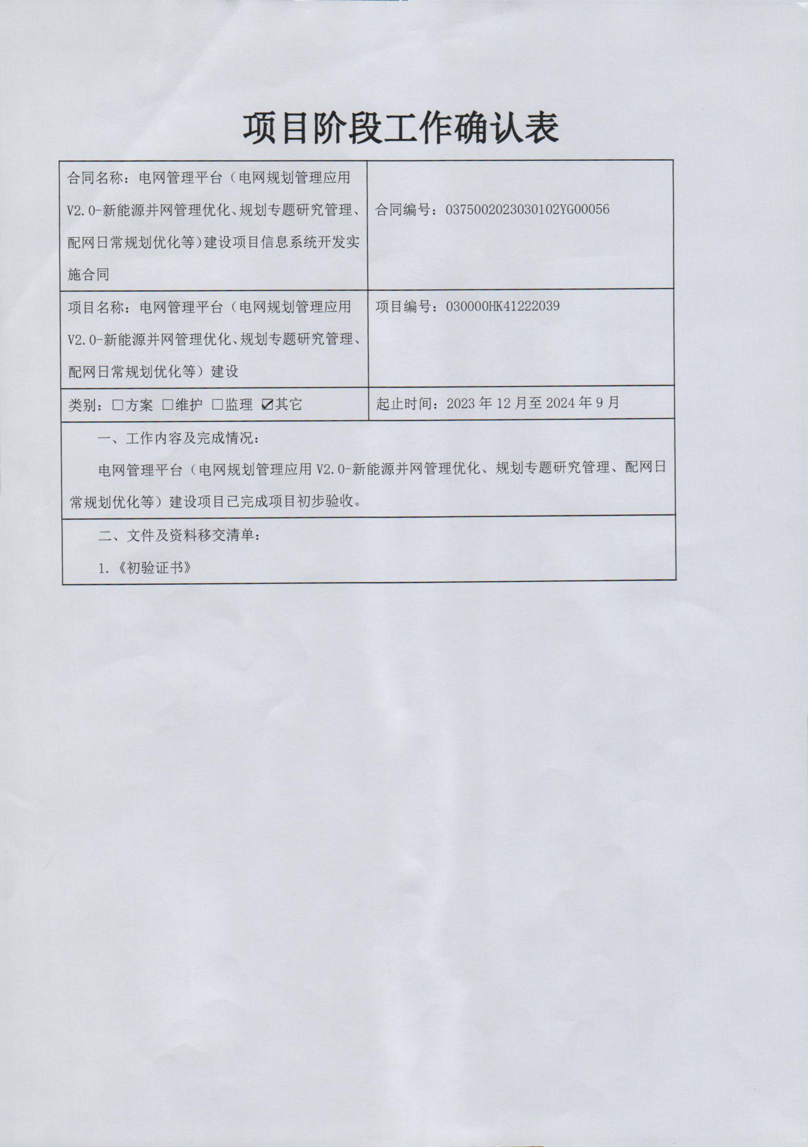确认表