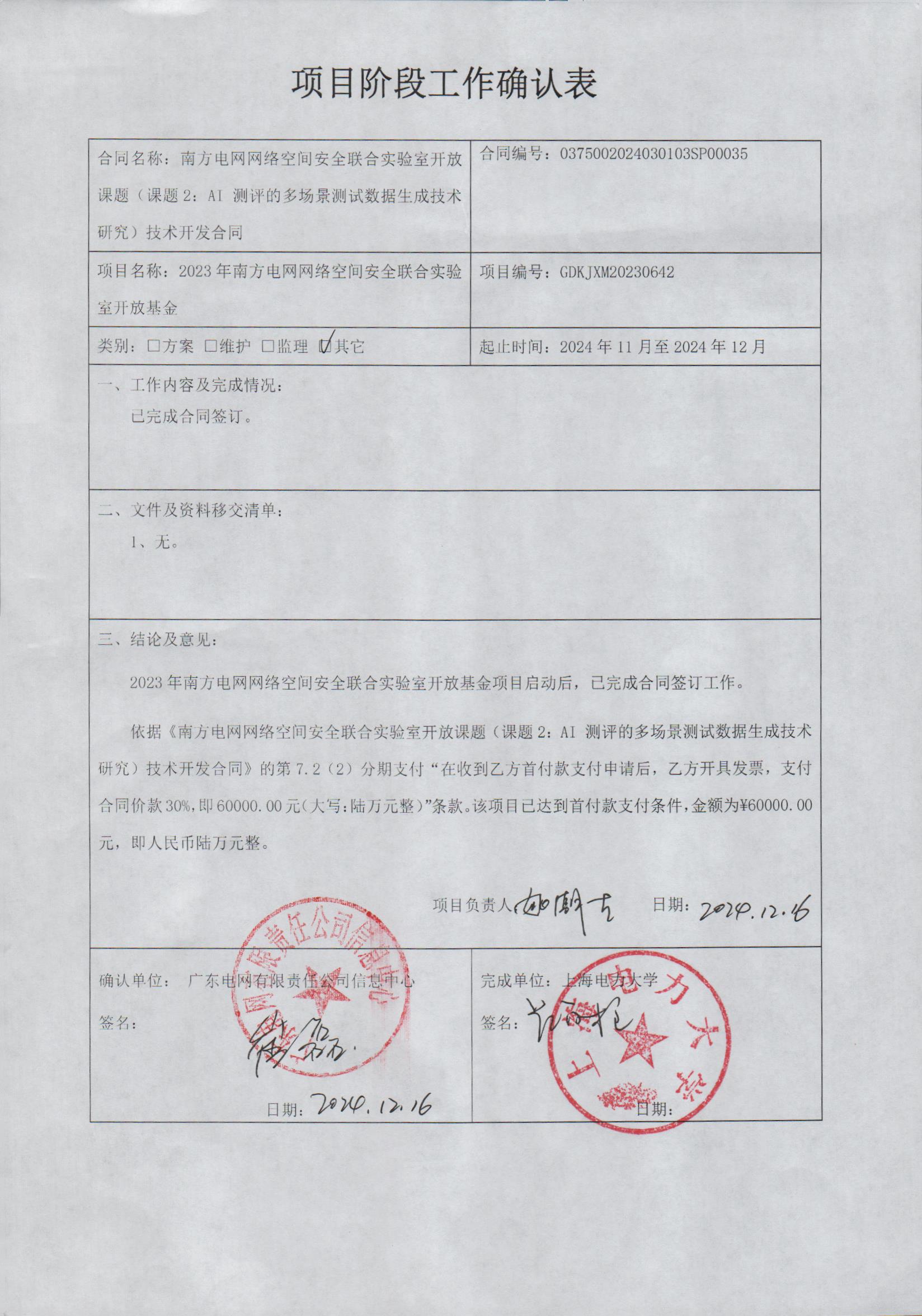 确认表